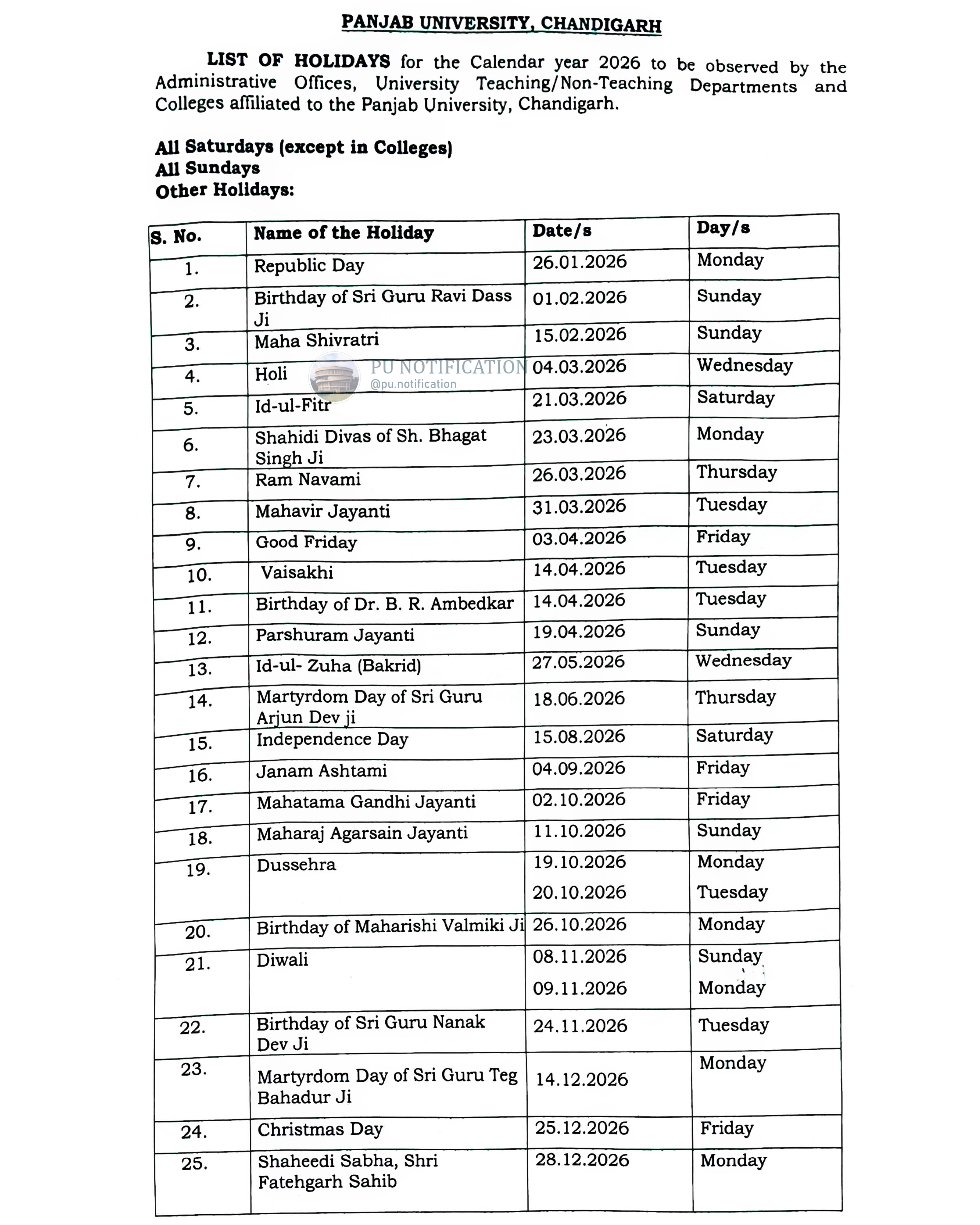 Planning ahead for the academic year is essential for every student, faculty member, and staff at Panjab University. The Panjab University Holidays List 2026 provides a clear schedule of gazetted holidays, academic breaks, and important observances that shape the university calendar. Whether you’re preparing for exams, scheduling research work, or simply organizing personal commitments, knowing the official holiday list ensures smooth planning and better time management.