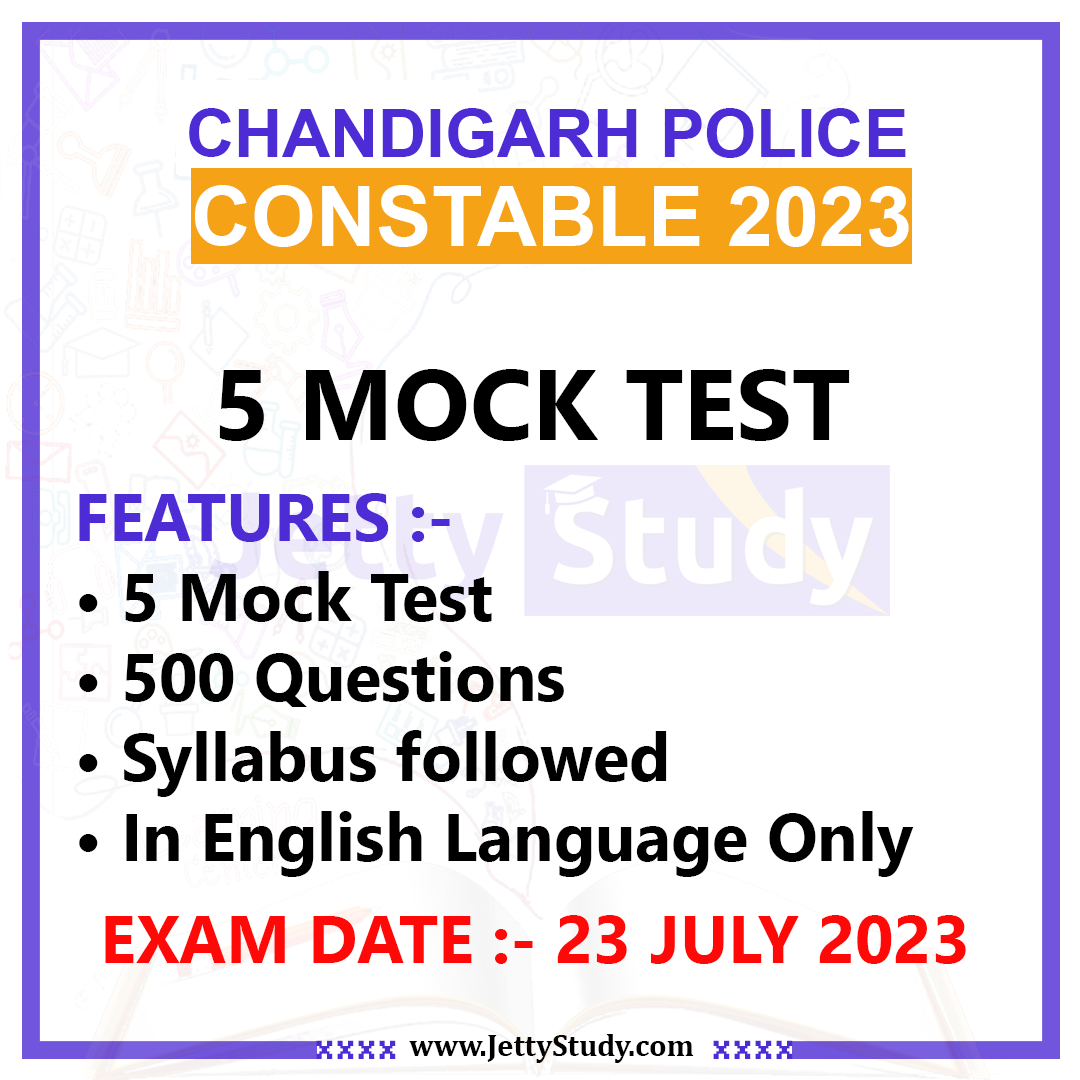 We are pleased to offer a comprehensive mock test series designed specifically for the Chandigarh Police Constable recruitment exam. This mock test package includes a total of 5 complete mock tests at a nominal price of Rs. 270. Our mock tests have been meticulously prepared to align with the syllabus followed by the Chandigarh Police recruitment board.